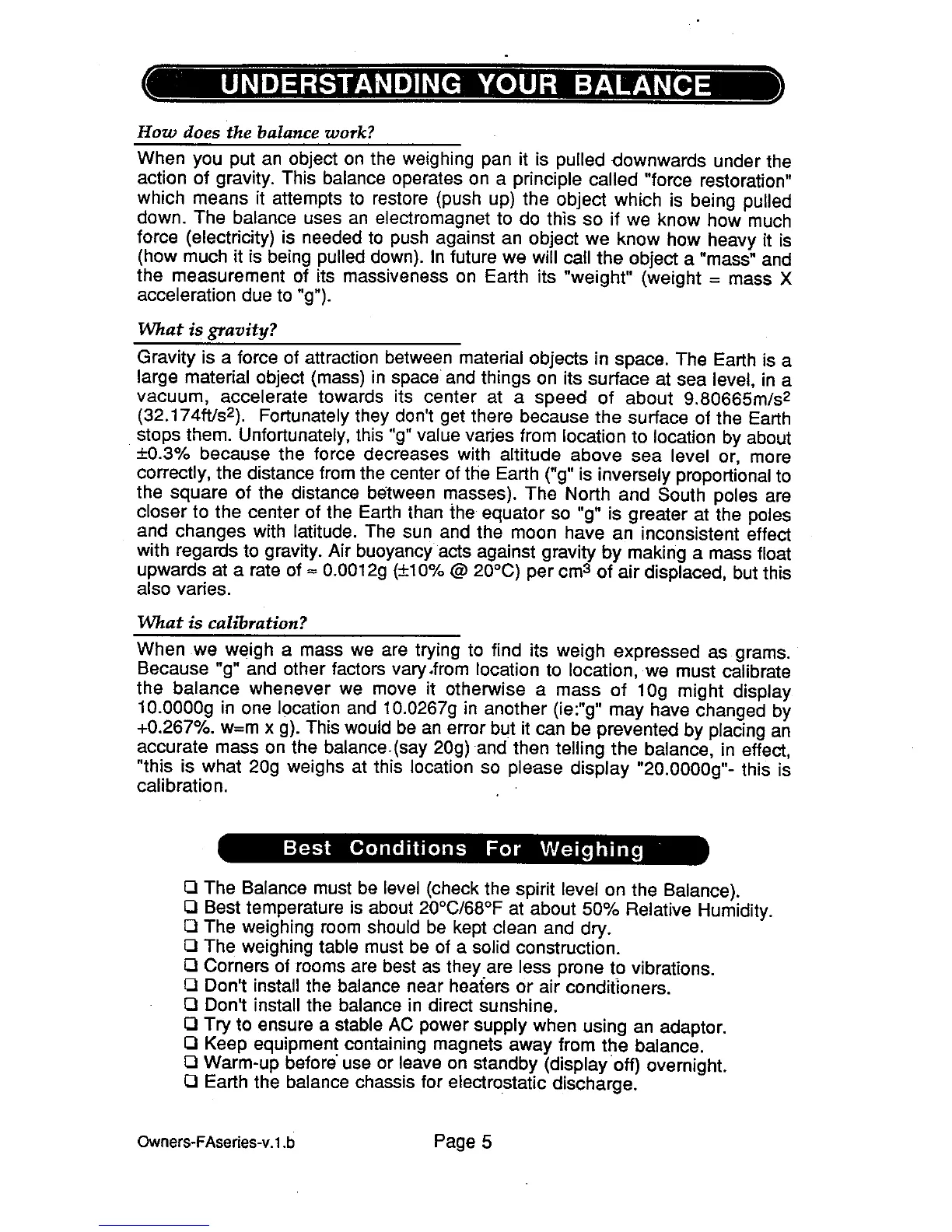 A&D FA-6000 - Understanding Your Balance; Best Conditions For Weighing
