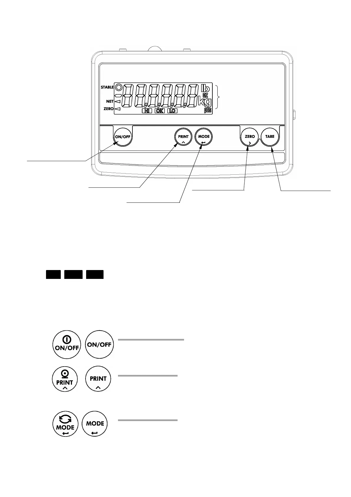 “lb”, “oz”, “kg” and “pcs” for U.S.A. models