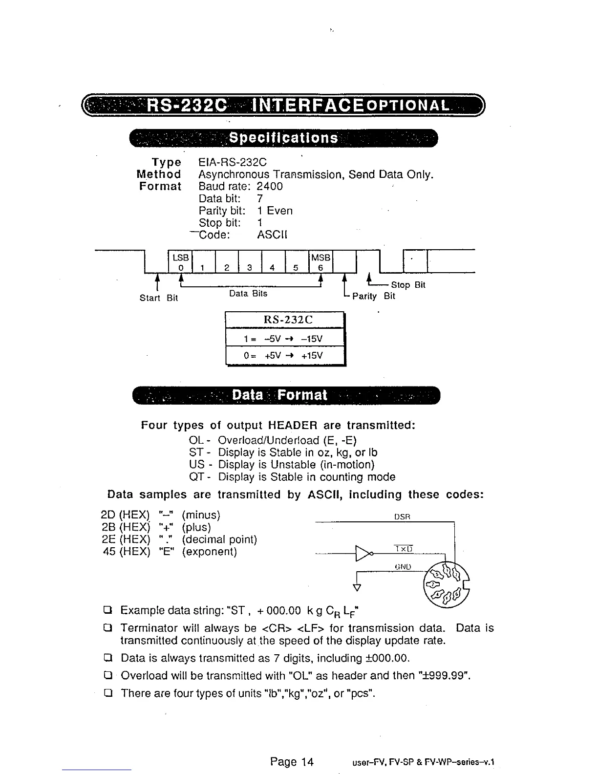 A&D FV-60KWP - RS-232 C International; Data Format