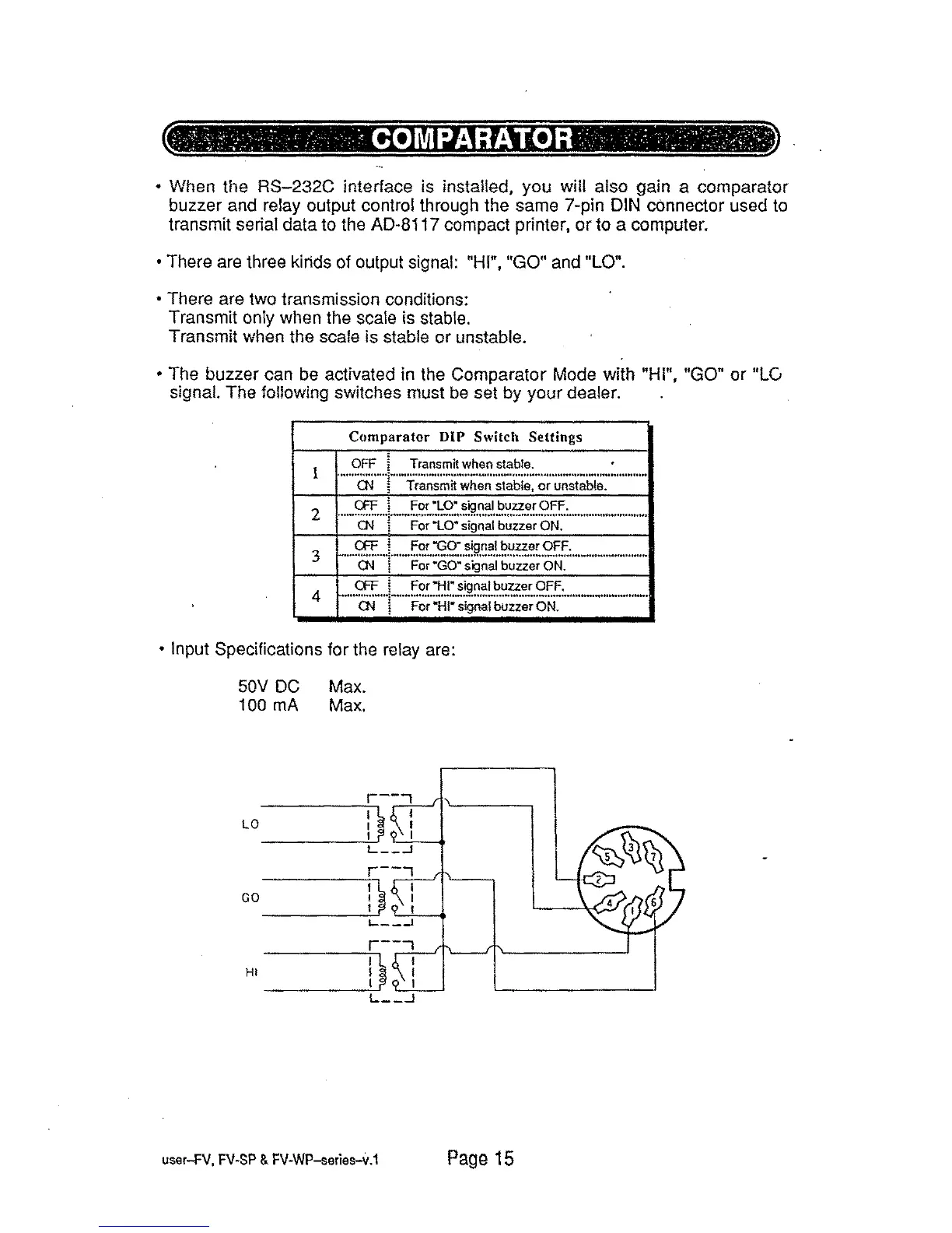 A&D FV-60KWP - Comparator; Comparator DIP Switch Settings