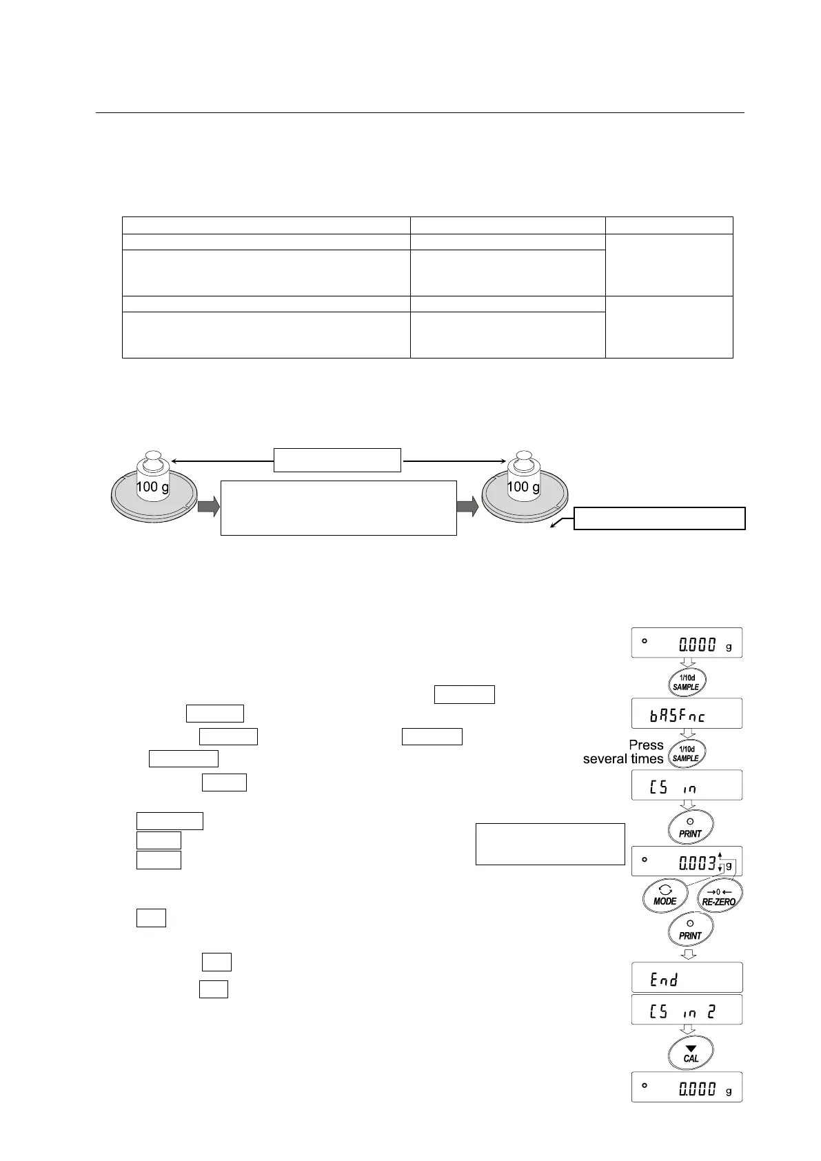 Example : Correcting the weight value by +0.003 g in 100 g using the FZ-120i