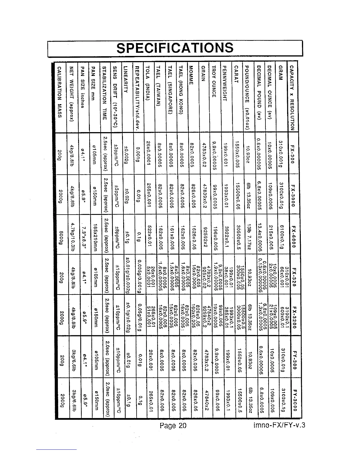 A&D FY-3000 - Specifications