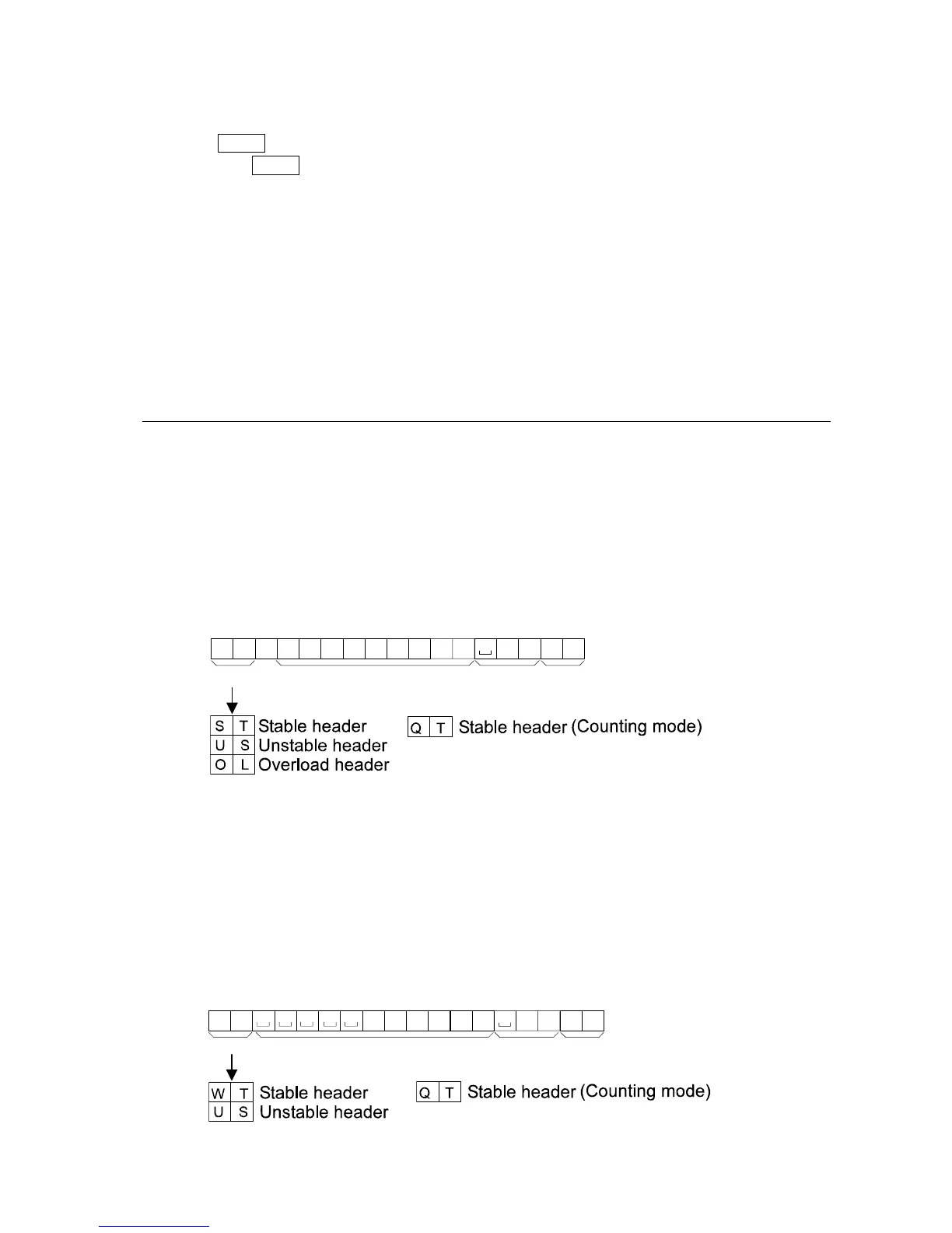A header of two characters indicates the balance condition. No overload header is used.