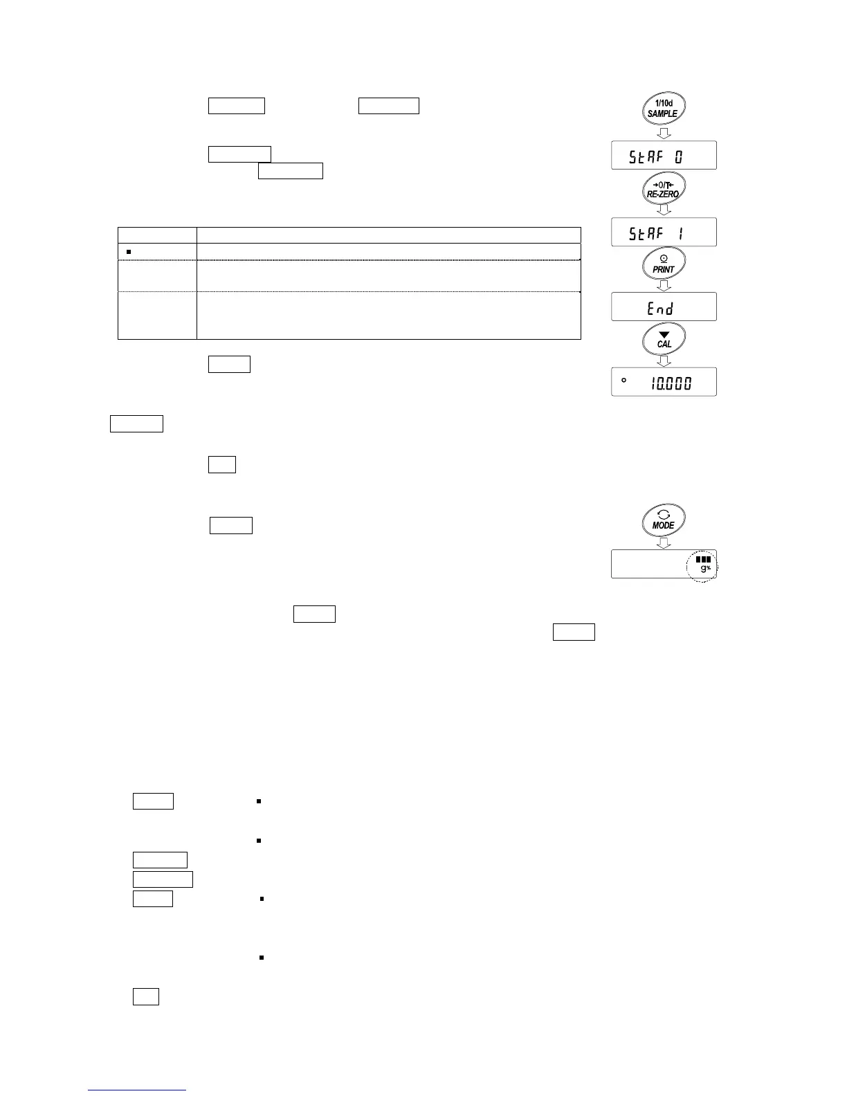SAMPLE key............. Turns the minimum weighing value on or off, in the weighing mode.