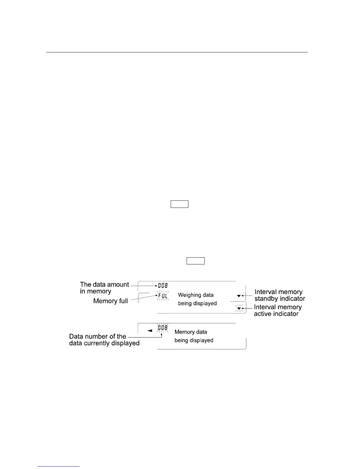 Interval memory mode Weighing data is stored at an interval specified in “Interval time