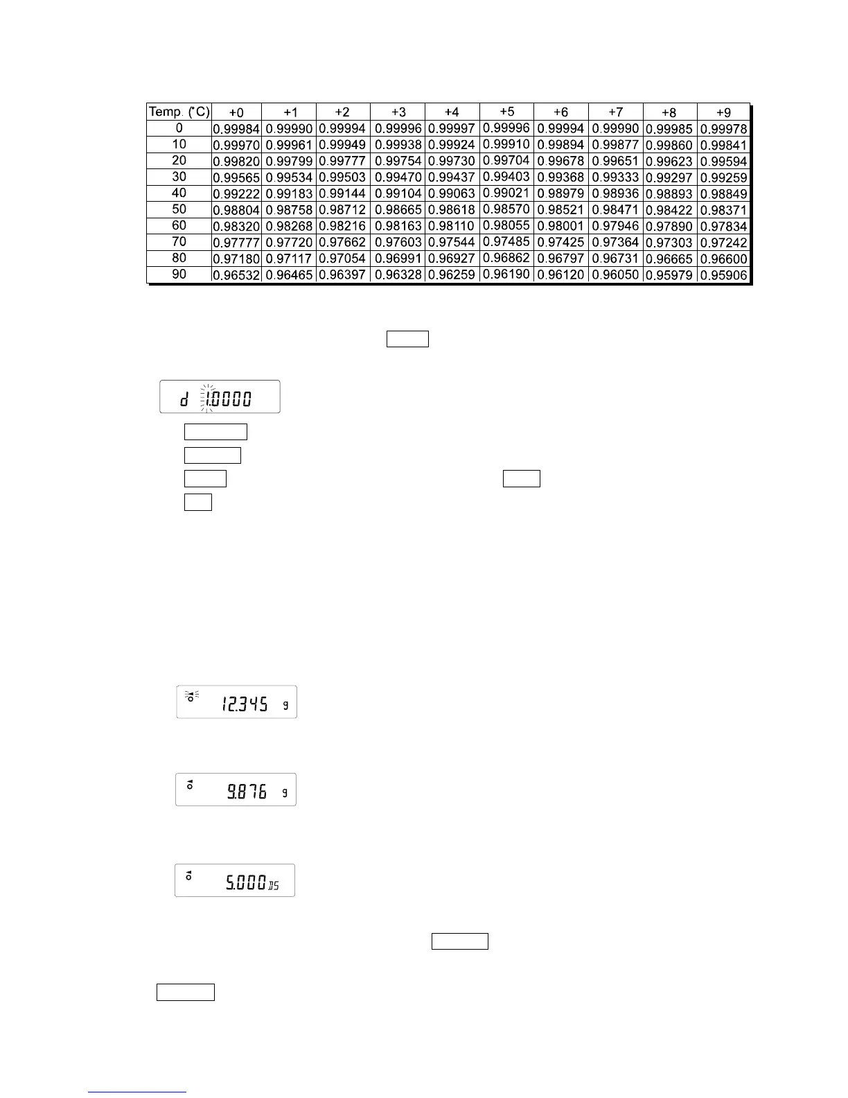 In the density mode, press and hold the MODE key until the density currently set (unit : g / cm