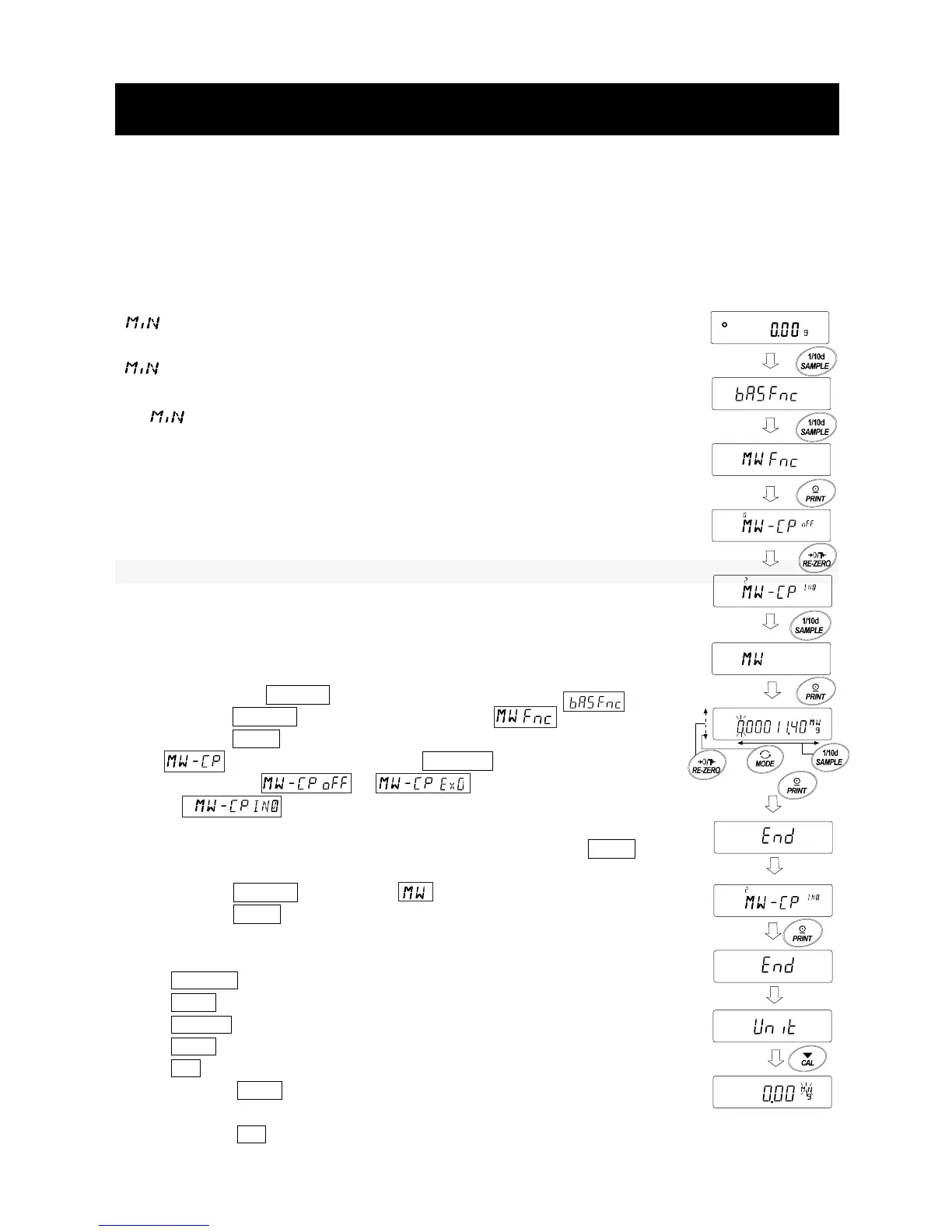 sample meets the set minimum weight value. This function can be used only in "mg or g" mode.
