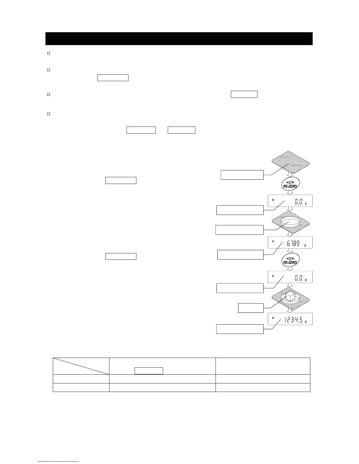 Pressing the RE-ZERO key allows weighing in the precision range, regardless of the