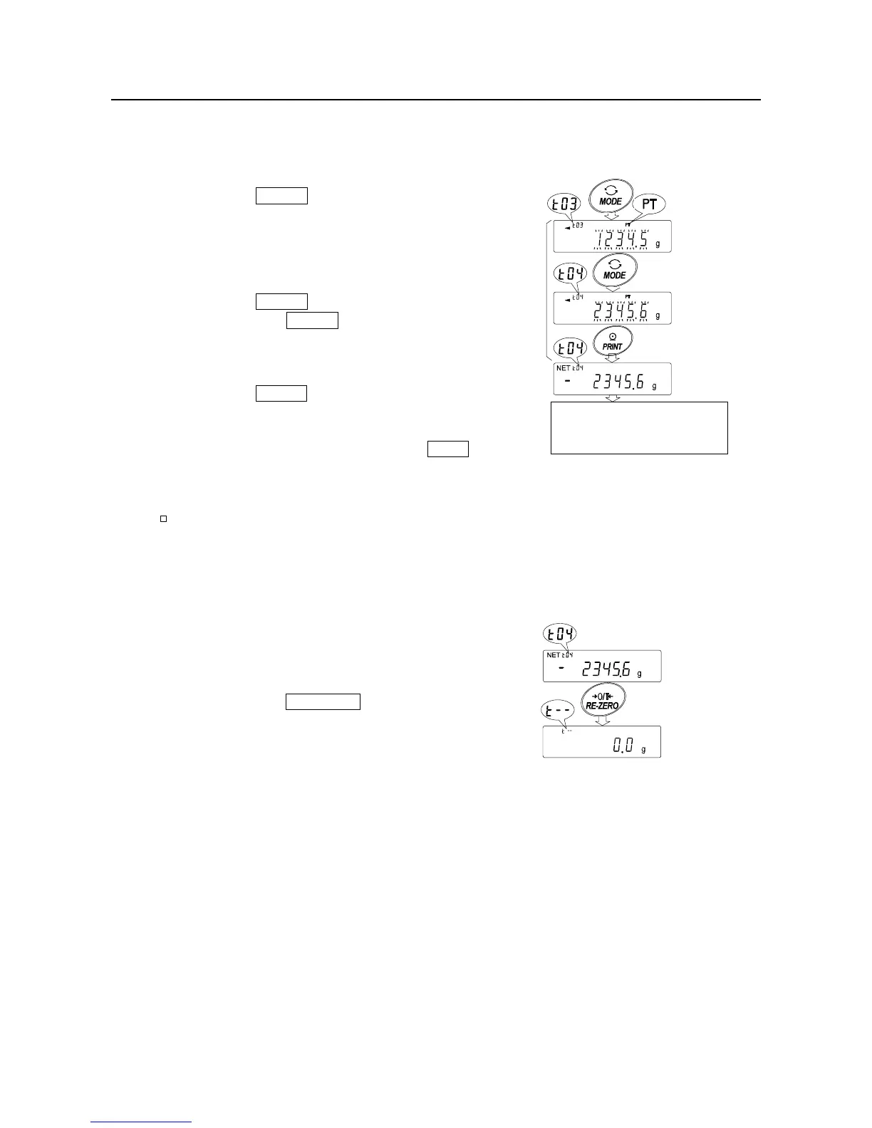 Step 2 Press the MODE key to enter the tare value