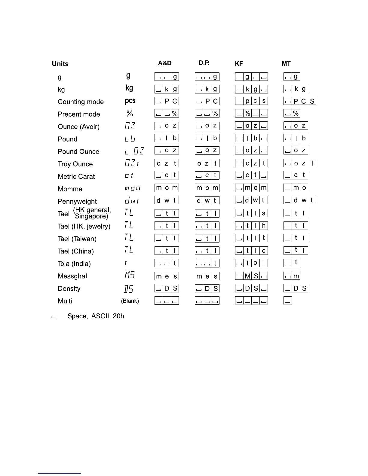 When “Pound Ounce” is selected, the data is output with the unit of ounce (oz).