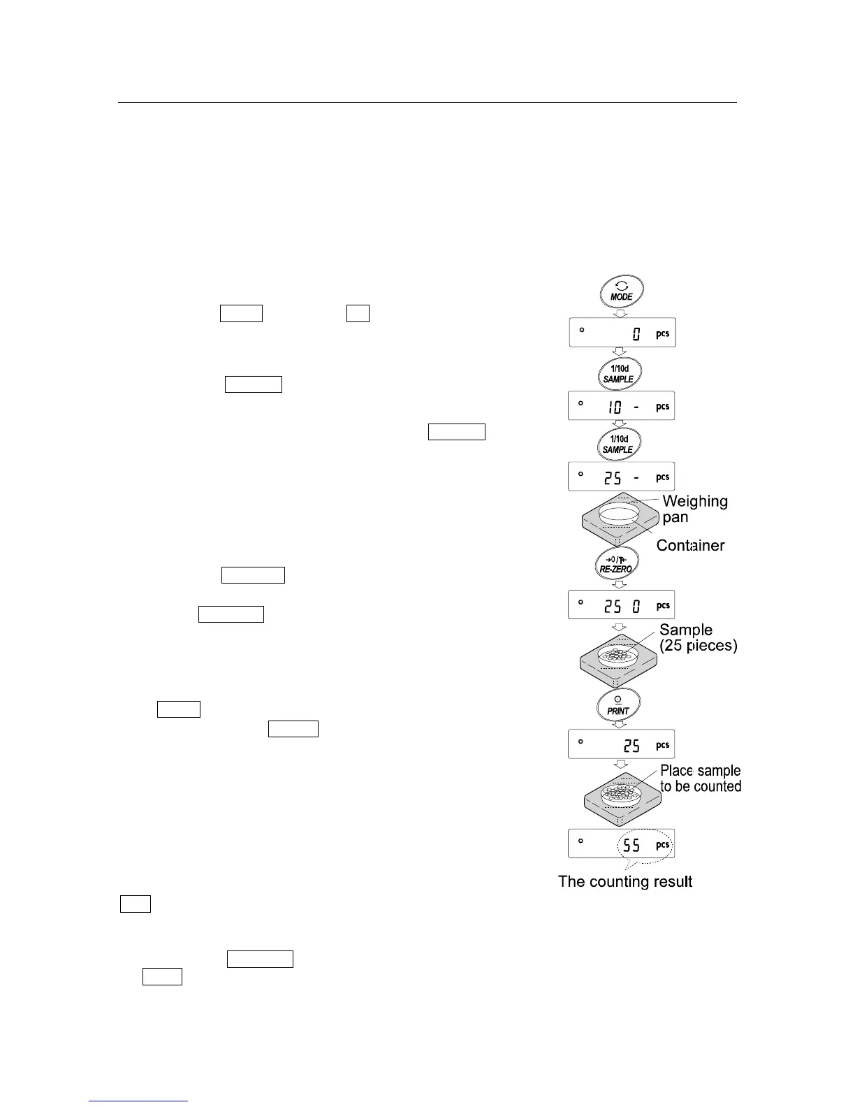 1 Press the MODE key to select pcs (counting mode).