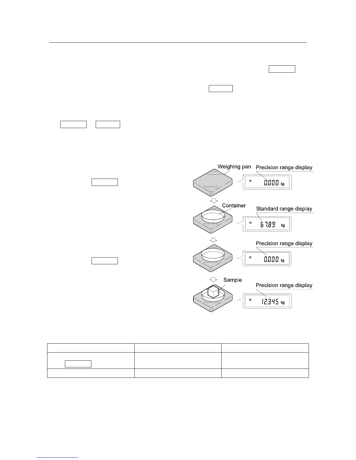 allows weighing in the precision range, regardless of the tare value. (Smart range function)