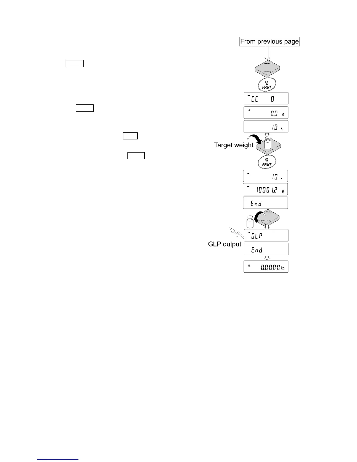 6 Place the displayed target weight on the pan and press