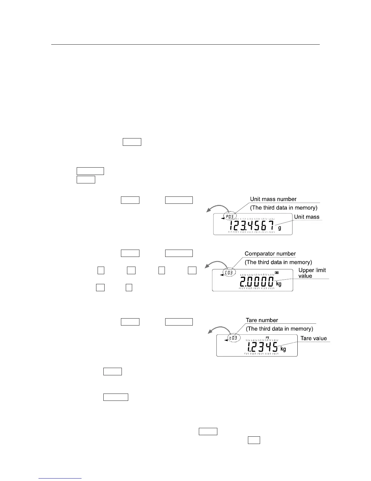 3 To perform a weighing using the selected memory data