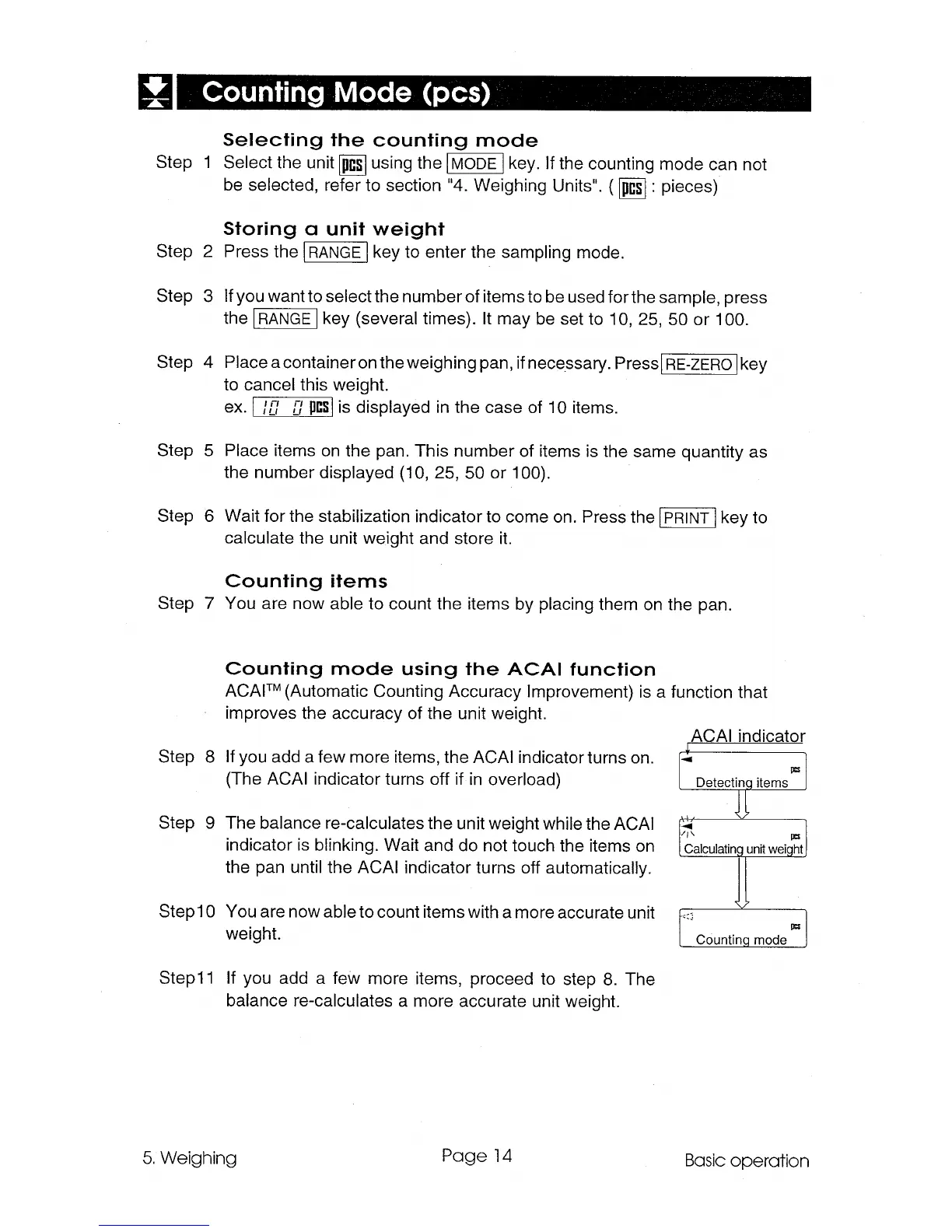 A&D GR-120 - Counting Mode; Selecting the Counting Mode; Storing a Unit Weight; Counting Mode Using the ACAI Function