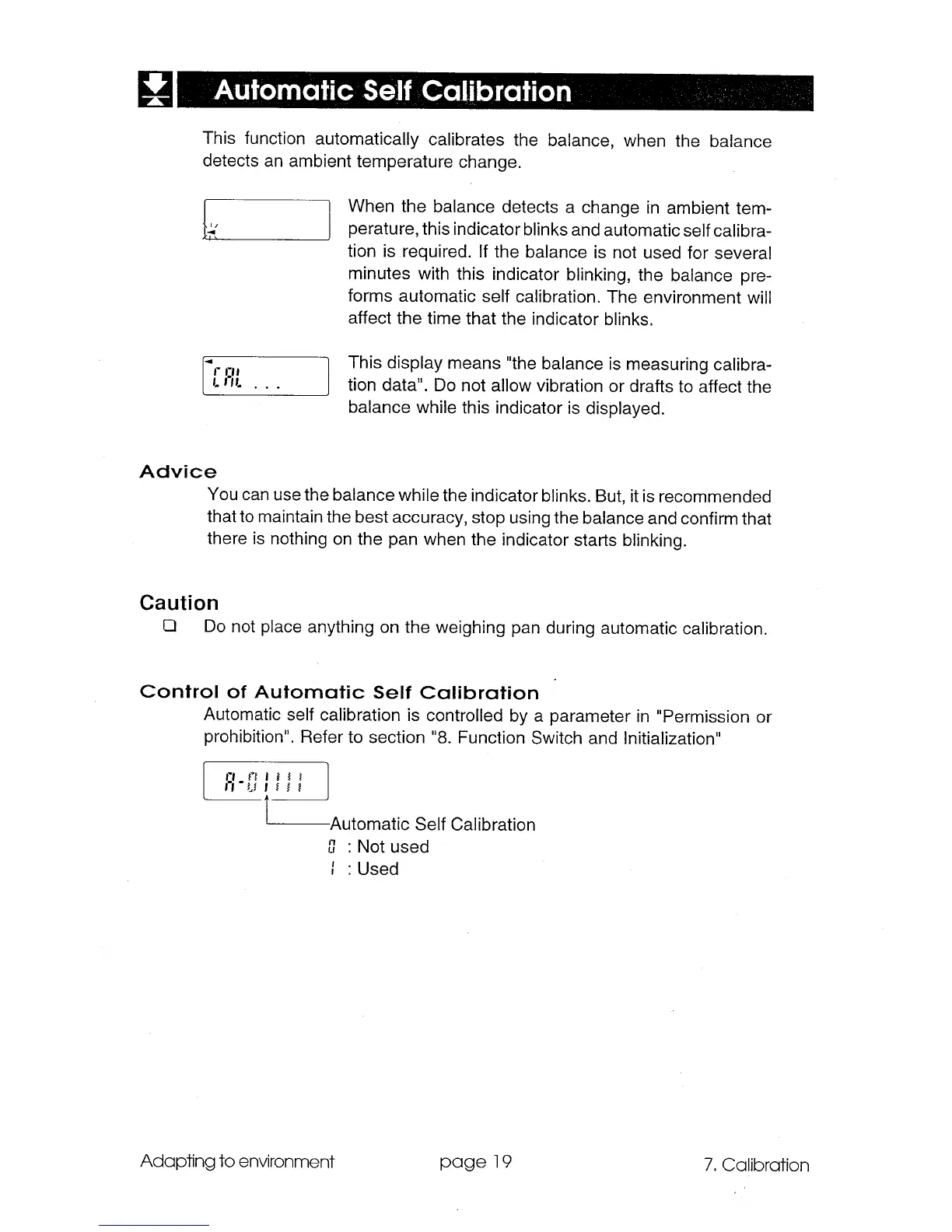 A&D GR-120 - Automatic Self Calibration; Control of Automatic Self Calibration