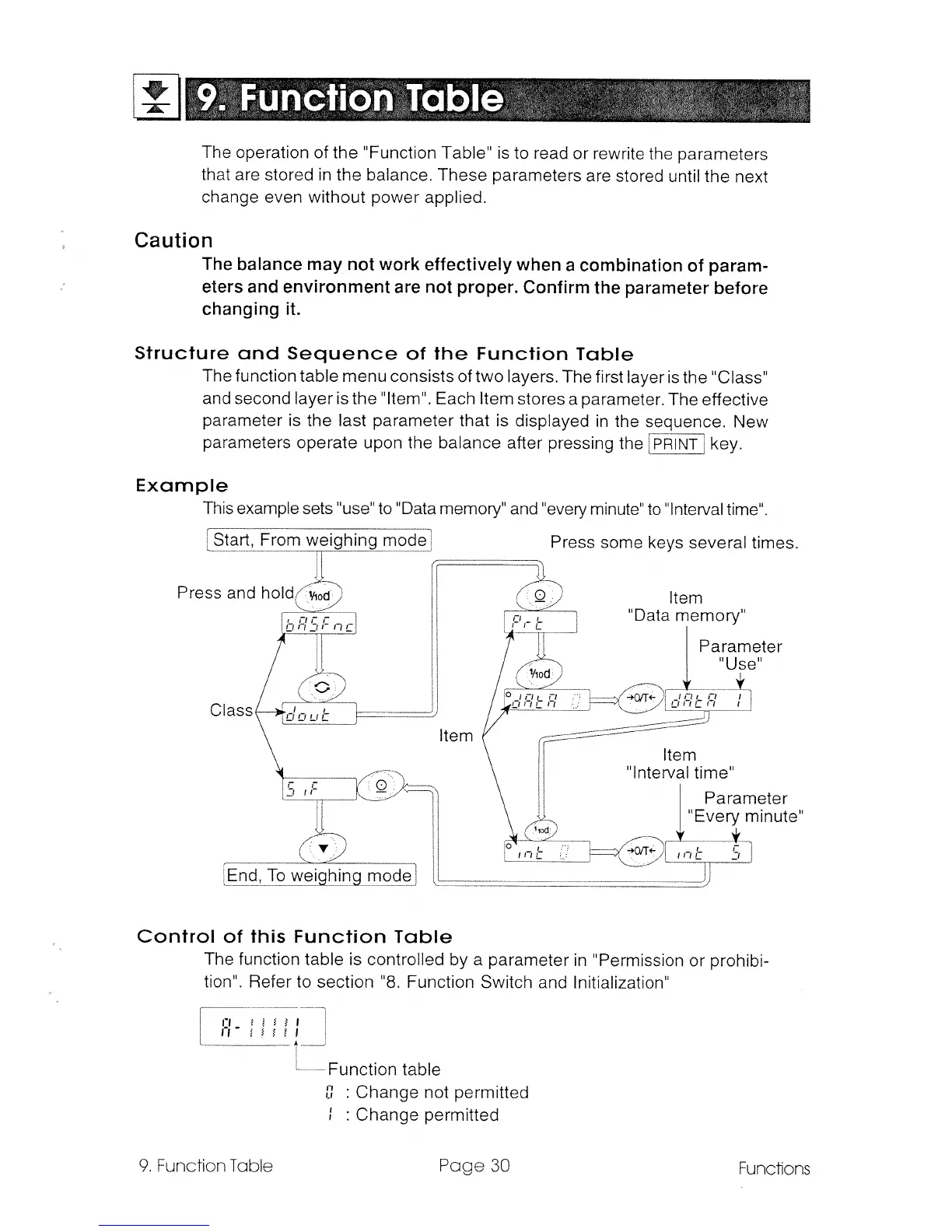 A&D GR-120 - Function Table; Structure and Sequence of the Function Table; Control of this Function Table