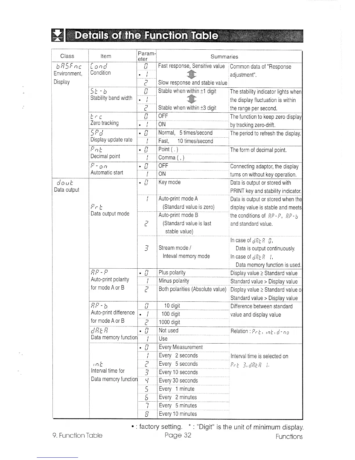 A&D GR-120 - Details of the Function Table