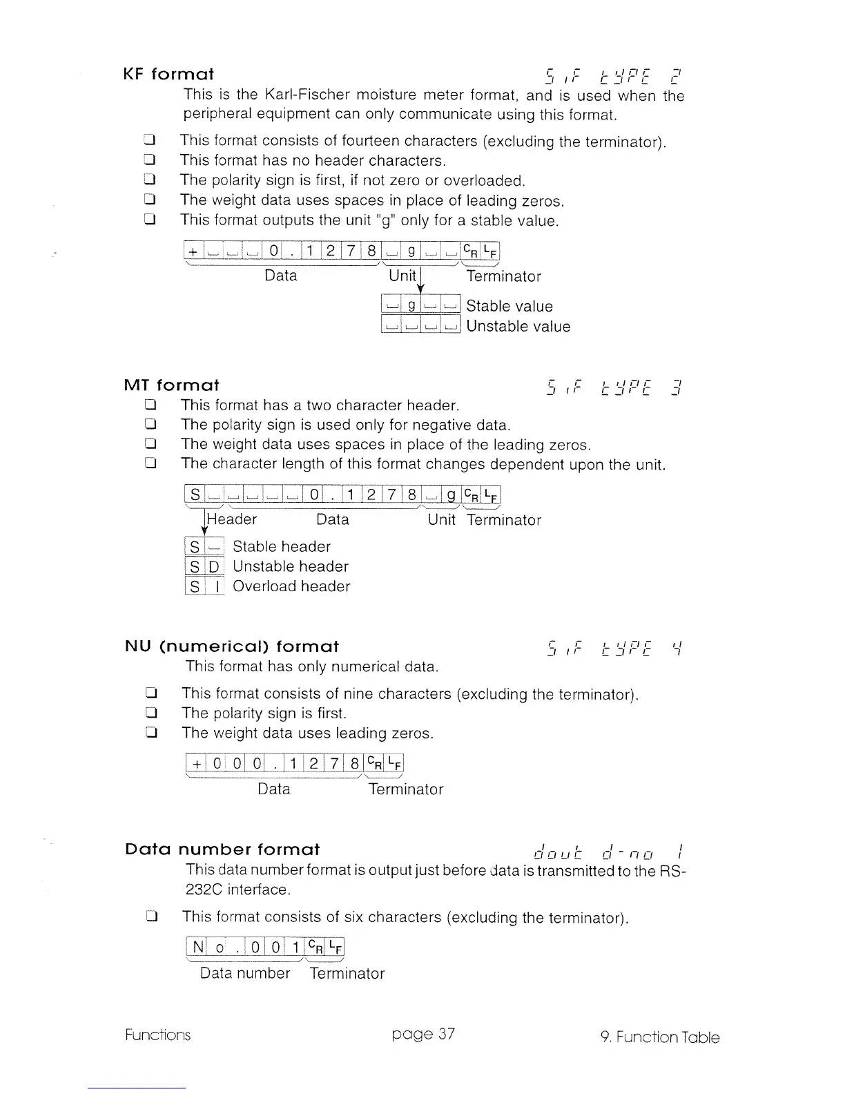 A&D GR-120 - KF Format; MT Format; NU Format; Data Number Format