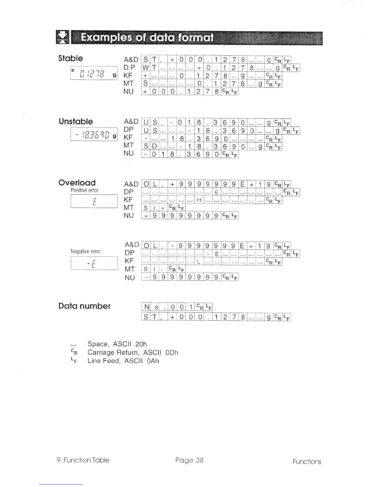 A&D GR-120 - Example of Data Format; Stable; Unstable; Overload