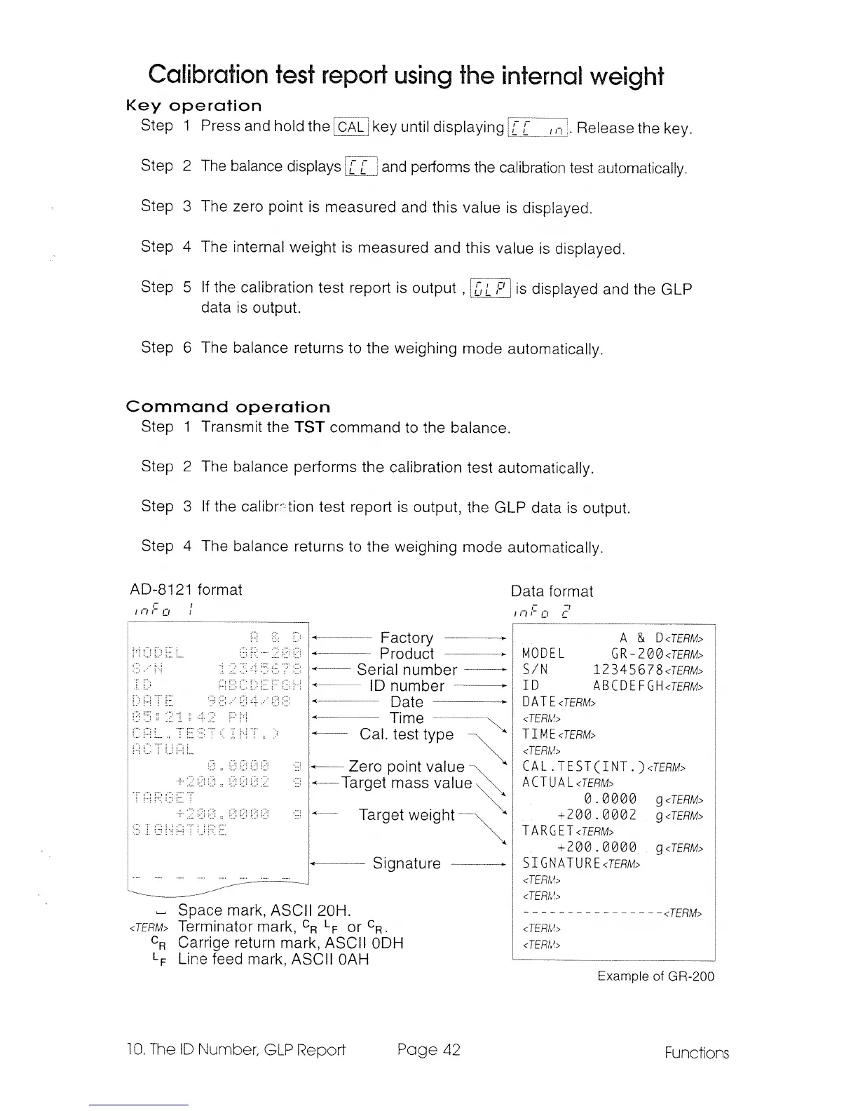 A&D GR-120 - Calibration Test Report Using the Internal Weight; Command Operation