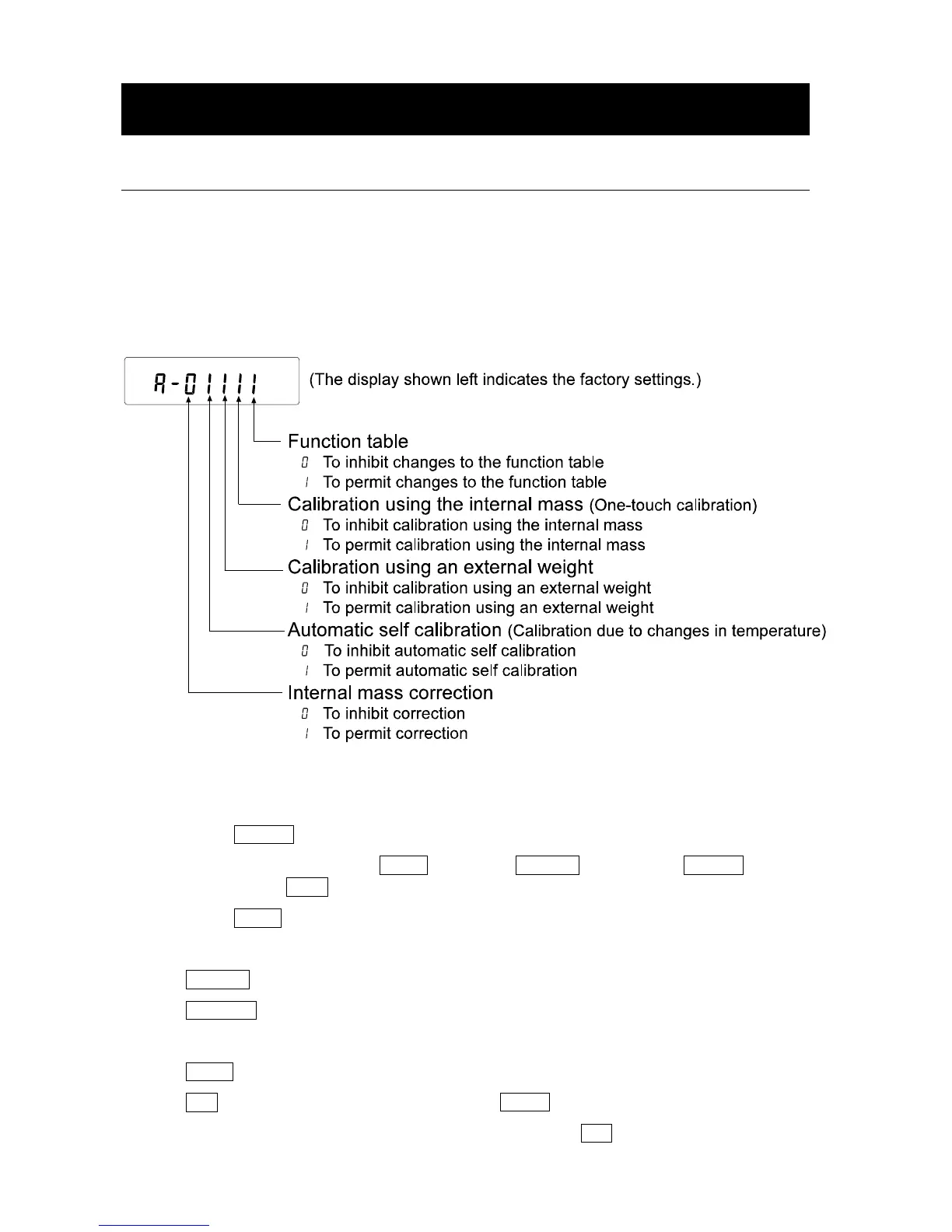 3 Press the PRINT key. Then the balance displays the function switches.