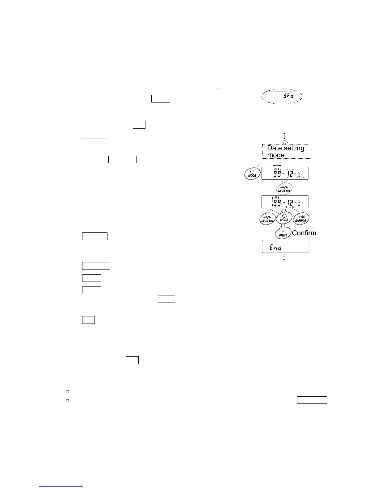 calendar function and return to the weighing mode.