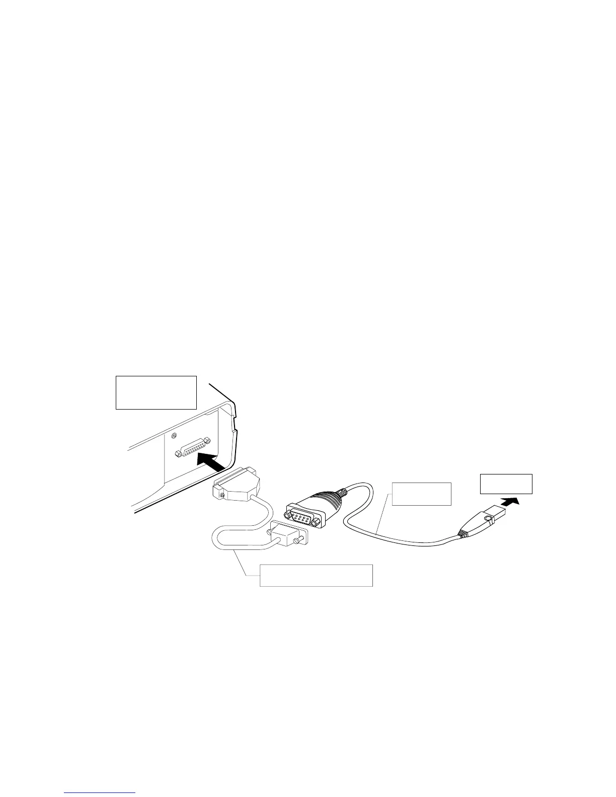 An RS-232C cable is provided to connect the USB converter to the balance.