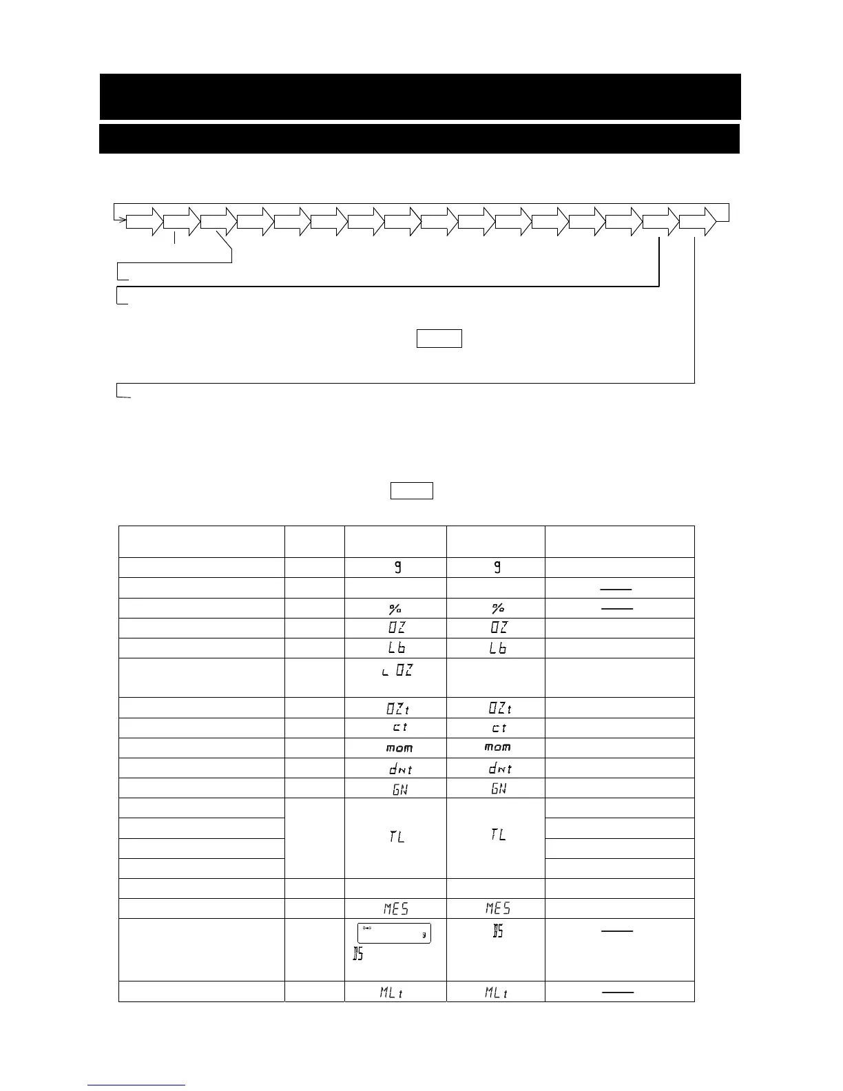 If a weighing mode (or unit of weight) has been turned off, that mode or unit will be missing in the