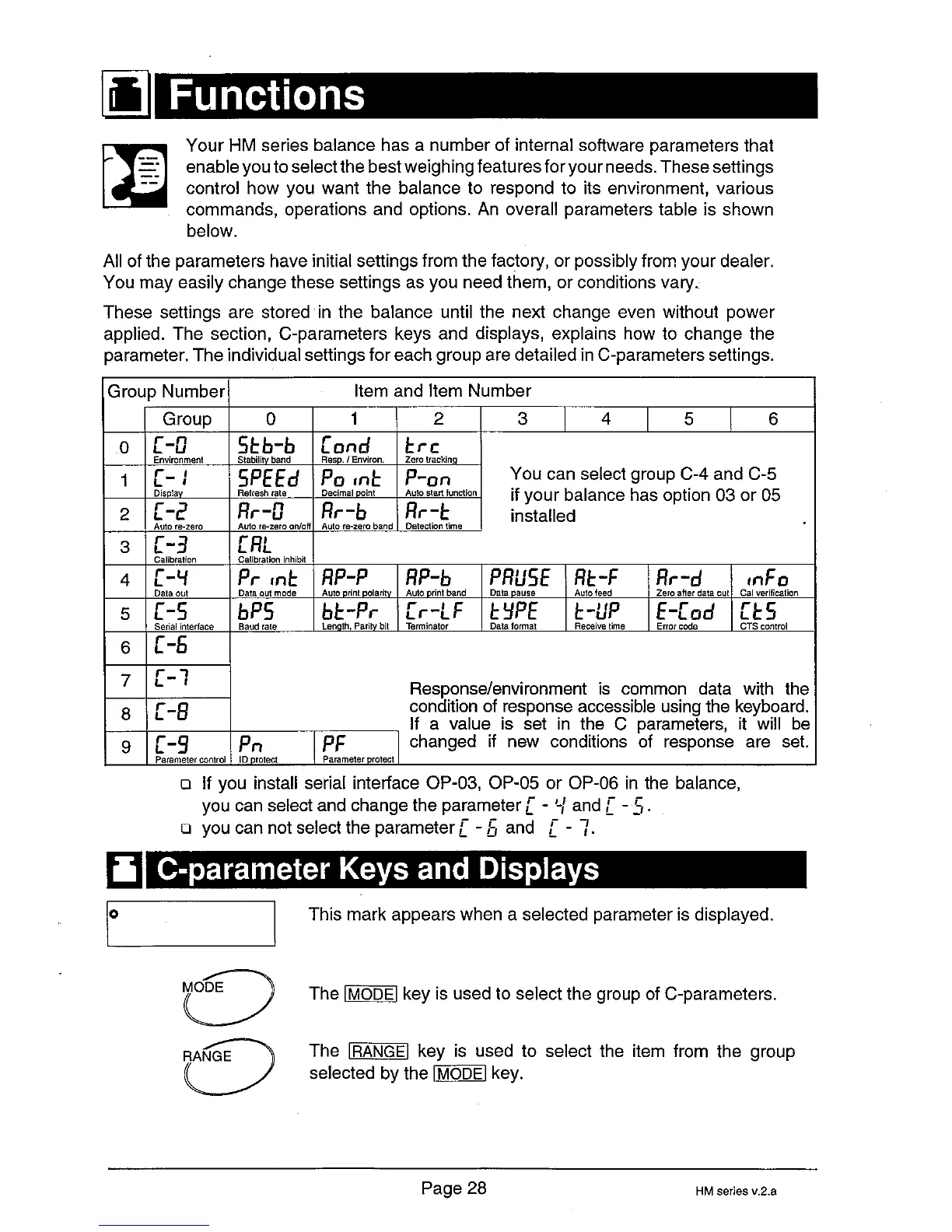 A&D HM-200 - Functions; C-Parameter Keys and Displays
