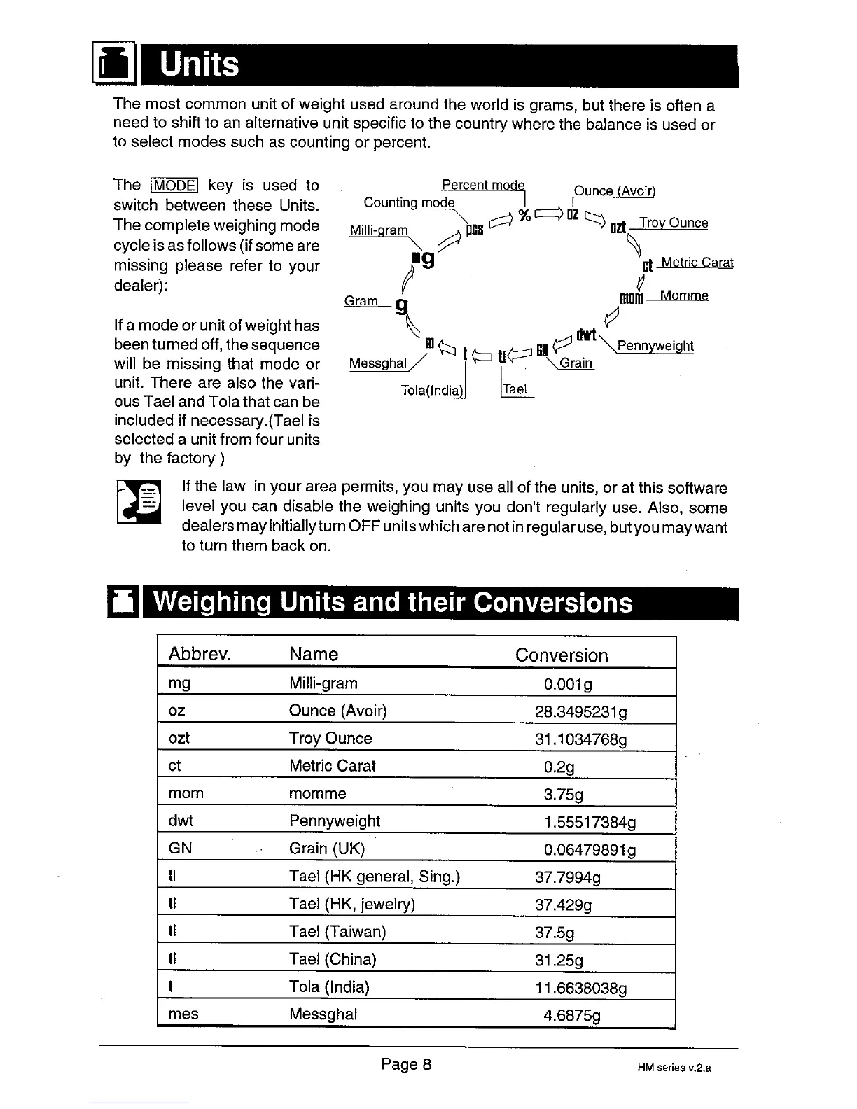 A&D HM-202 - Units; Weighing Units and their Conversions