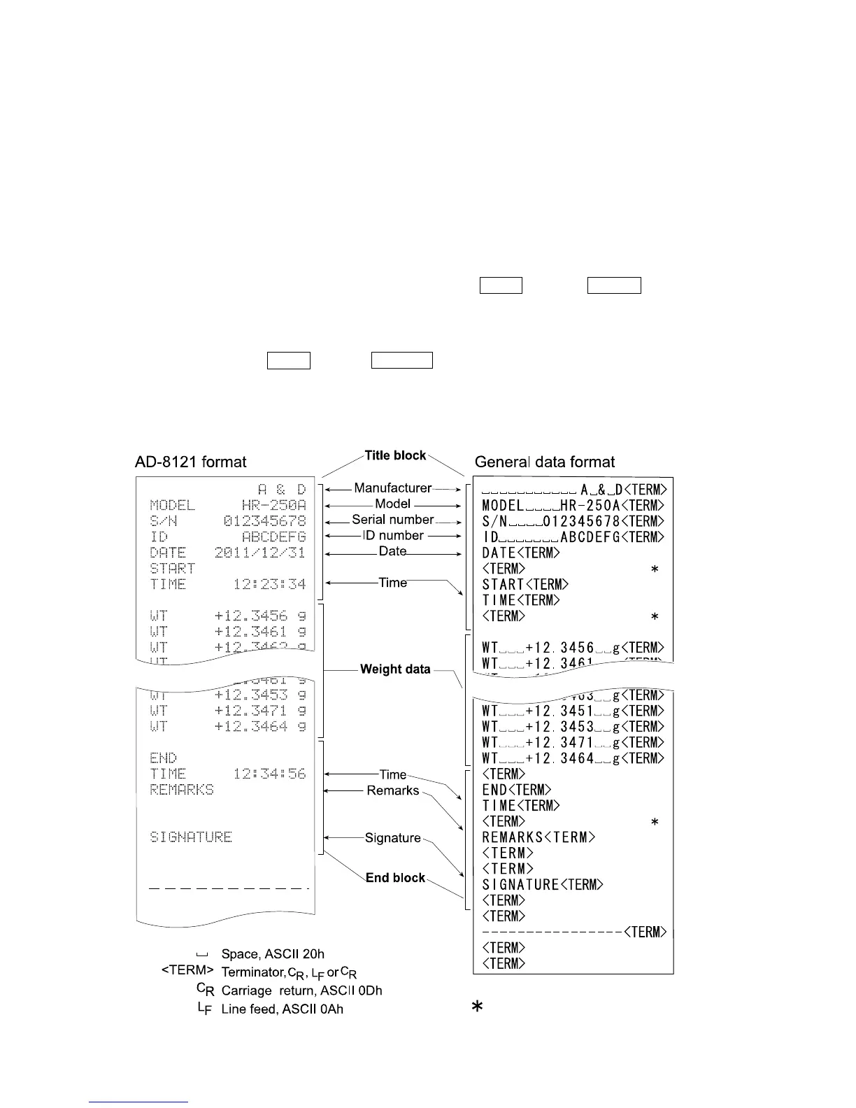 When a weight value is recorded as the GLP data, “Title block” and “End block” are inserted at the