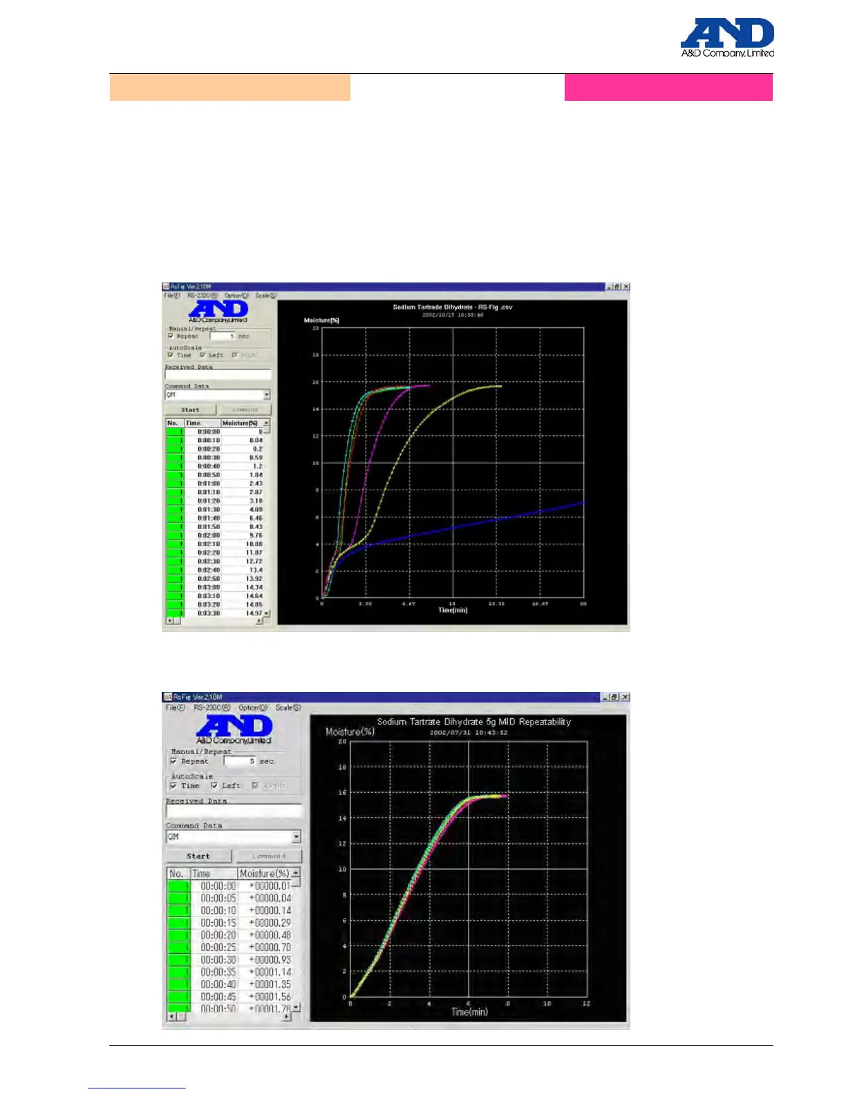RsFig imports CSV data for moisture content rate measurement process and results and displays it as a