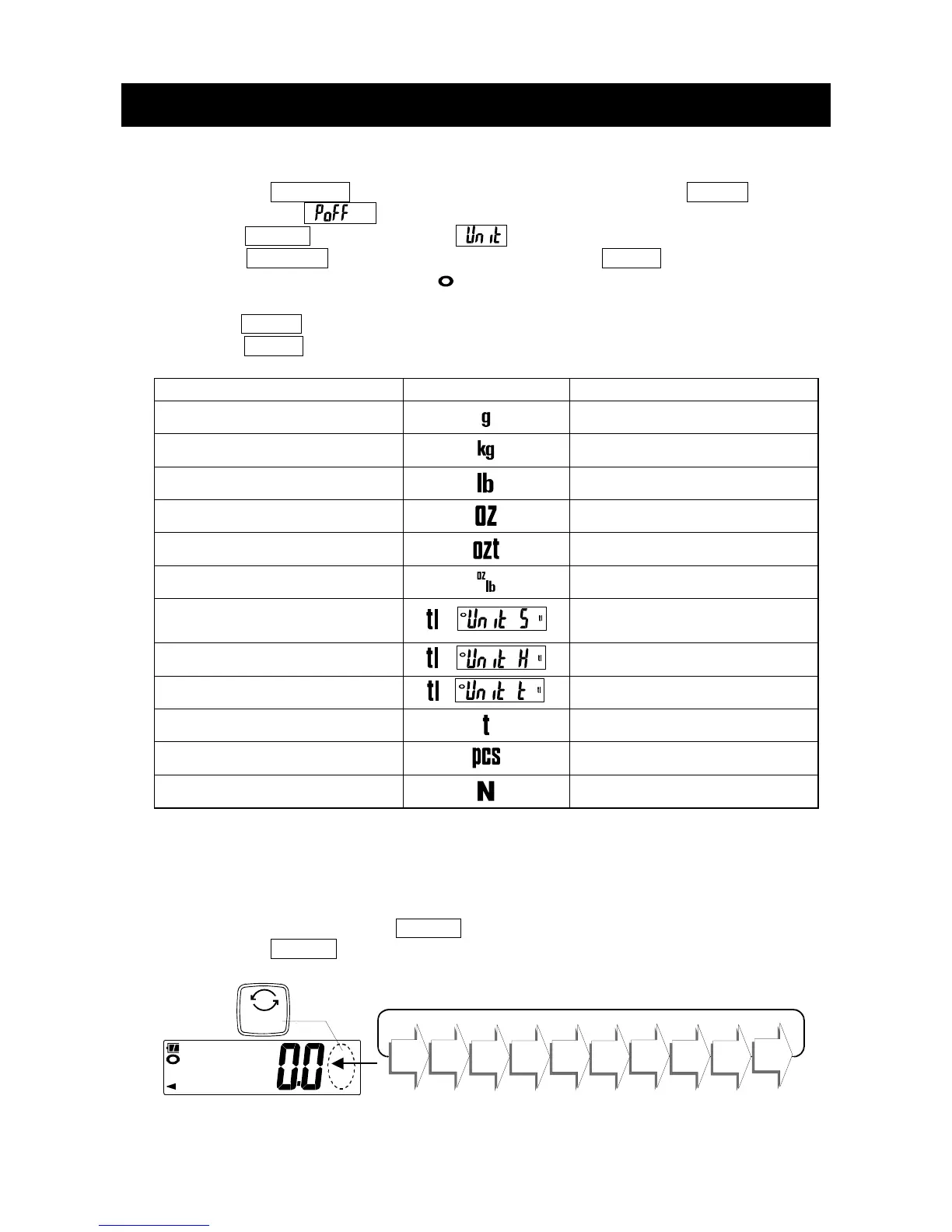 Each time the UNITS switch is pressed, the unit changes as shown below.