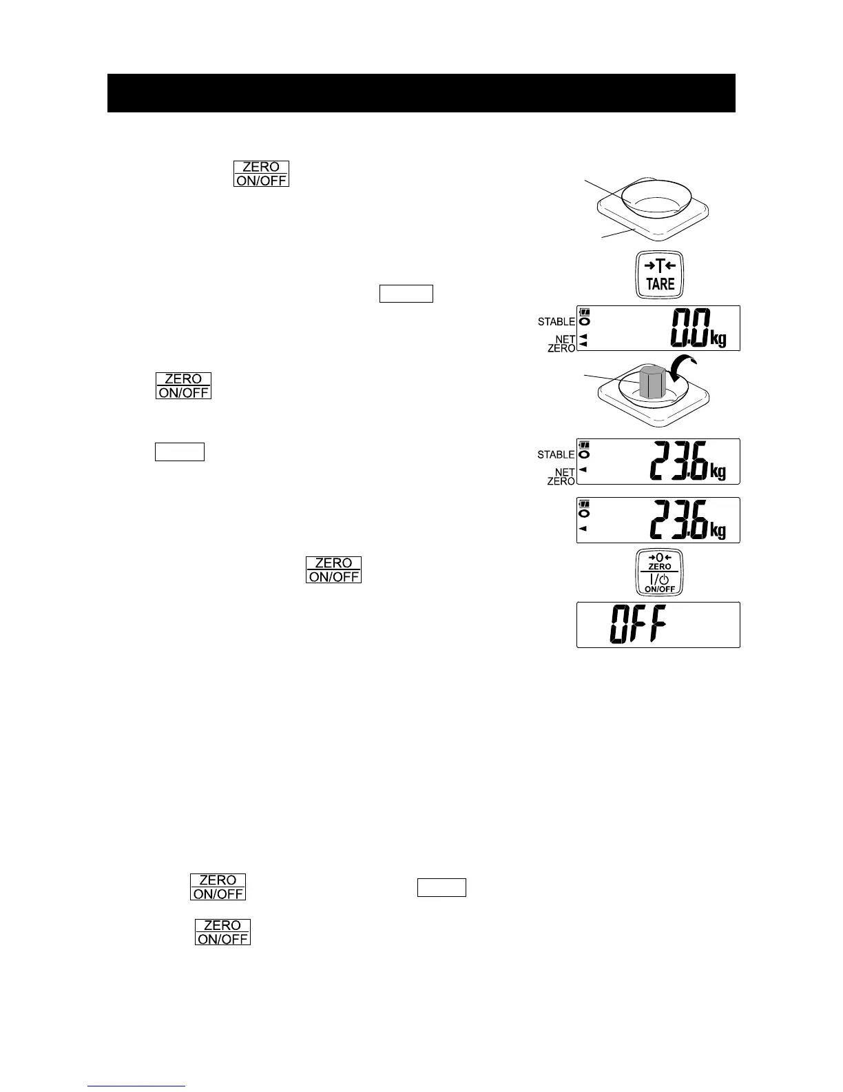 displays zero (power-on zero) with the weighing