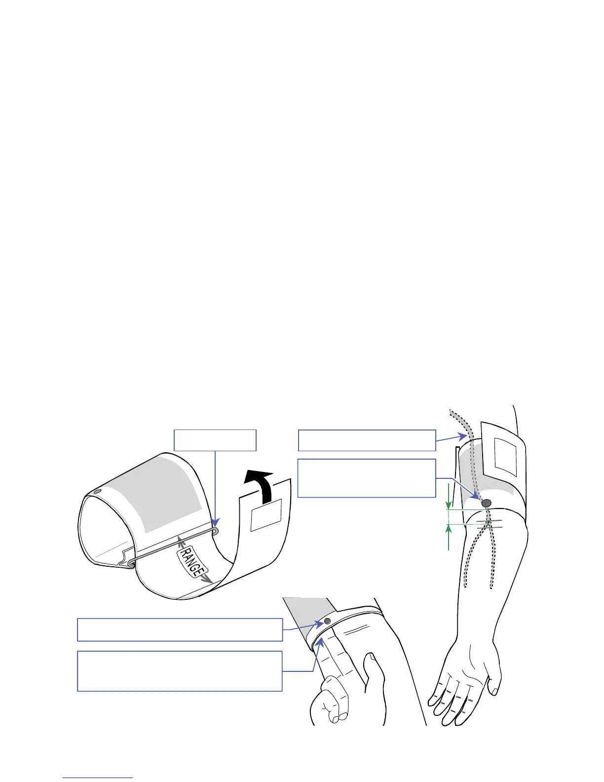 Attach the cuff directly against the skin so that the white mark is