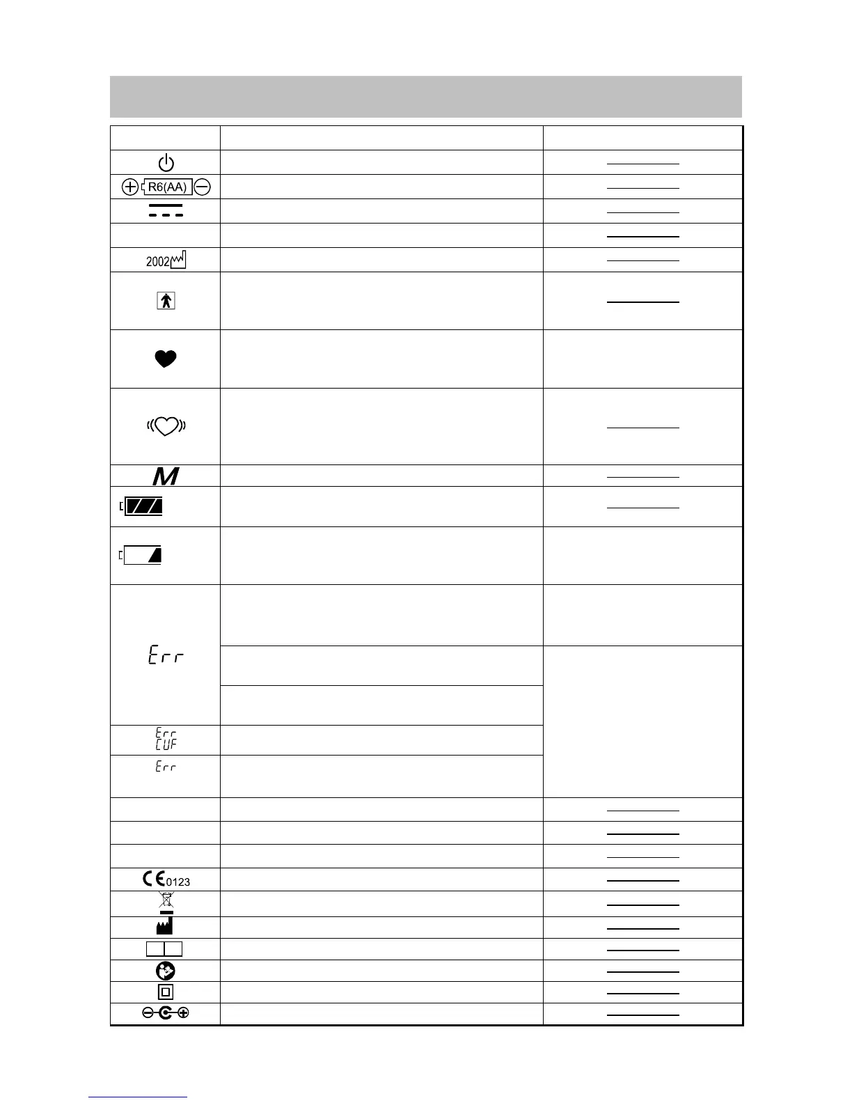 Symbols Function / Meaning Recommended Action