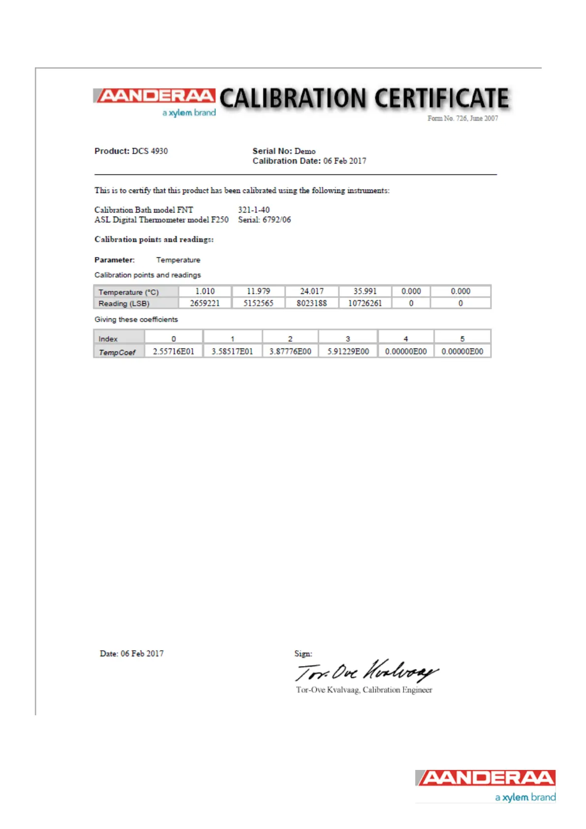 Figure 9-6: Example of Calibration Certificate compass and tilt page 1
