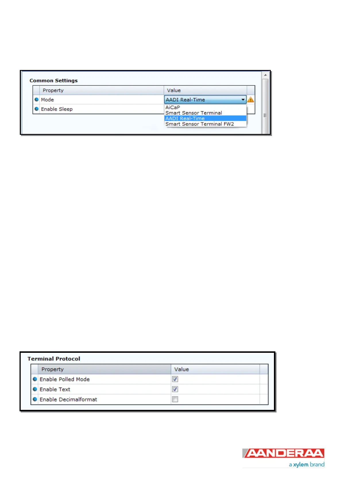 • AADI Real-Time is the correct mode (protocol) when the sensor is used stand-alone together with Real-Time