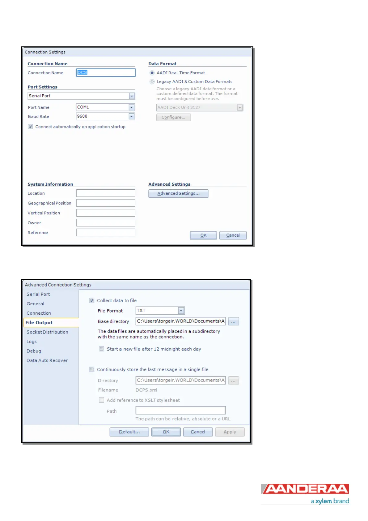 Figure 4-3: Advanced connection settings / File Output