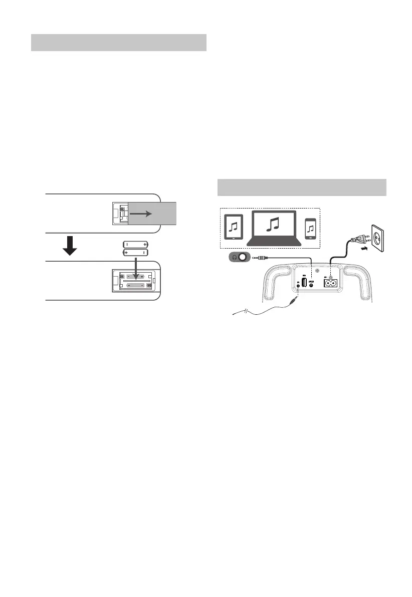 • Remove the battery from the remote control