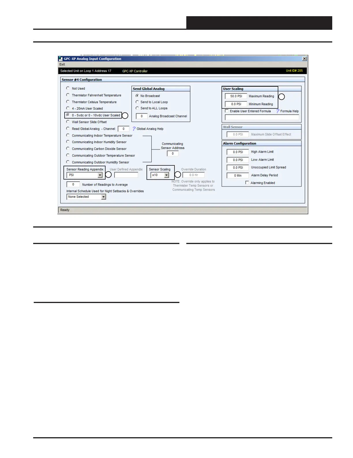 Item #3 indicates the Sensor Scaling has been congured to “10” which