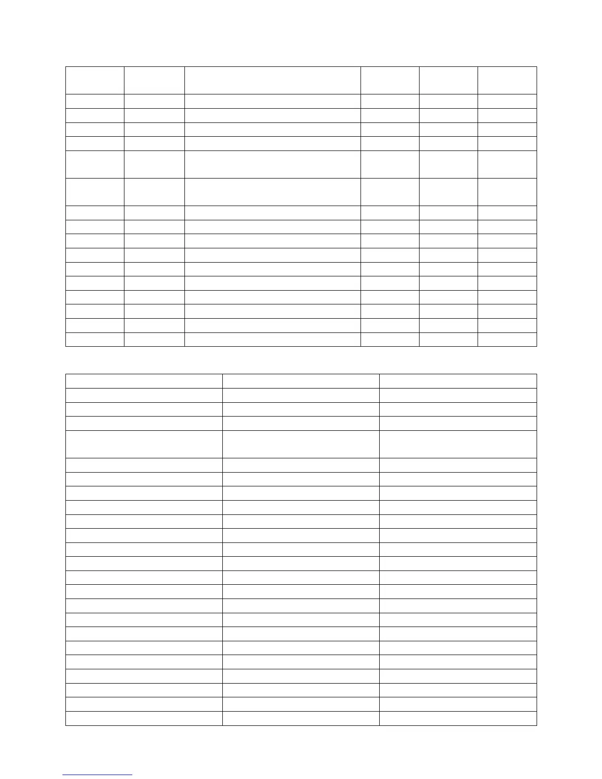 Table 5 - Analog Values Continued