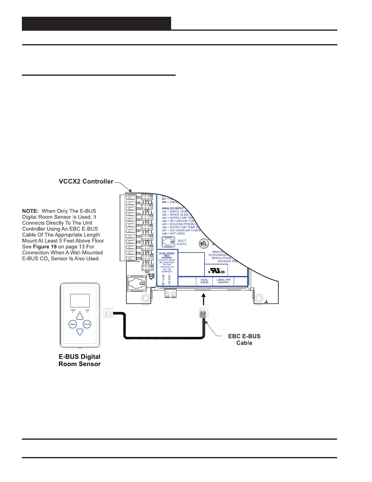 E-BUS Digital Room Sensor to HVAC Unit Controller Wiring