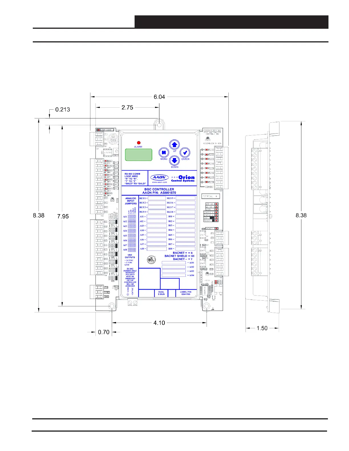 AAON Orion BACnet General Controller - Dimensions