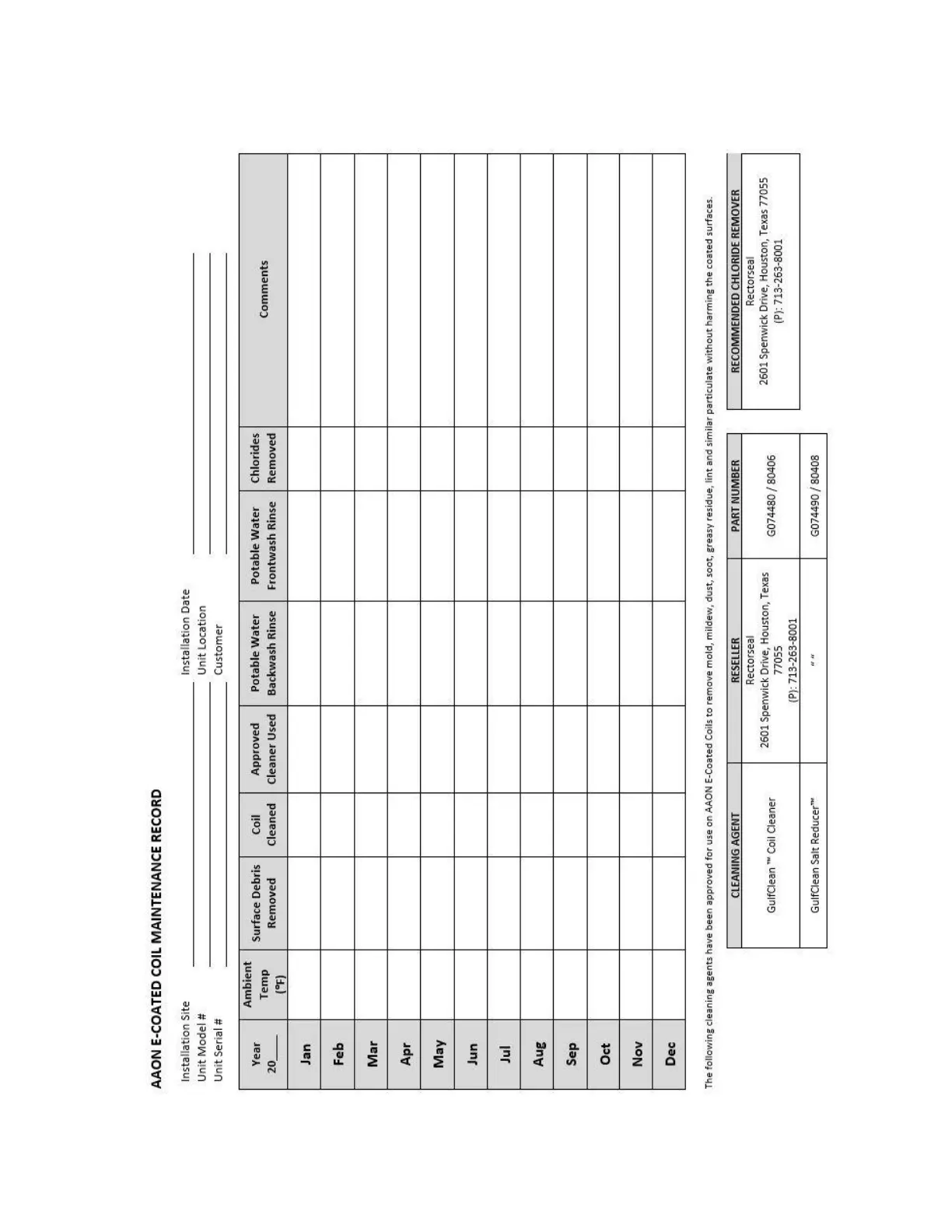 Maintenance Log (E-Coated Coil)