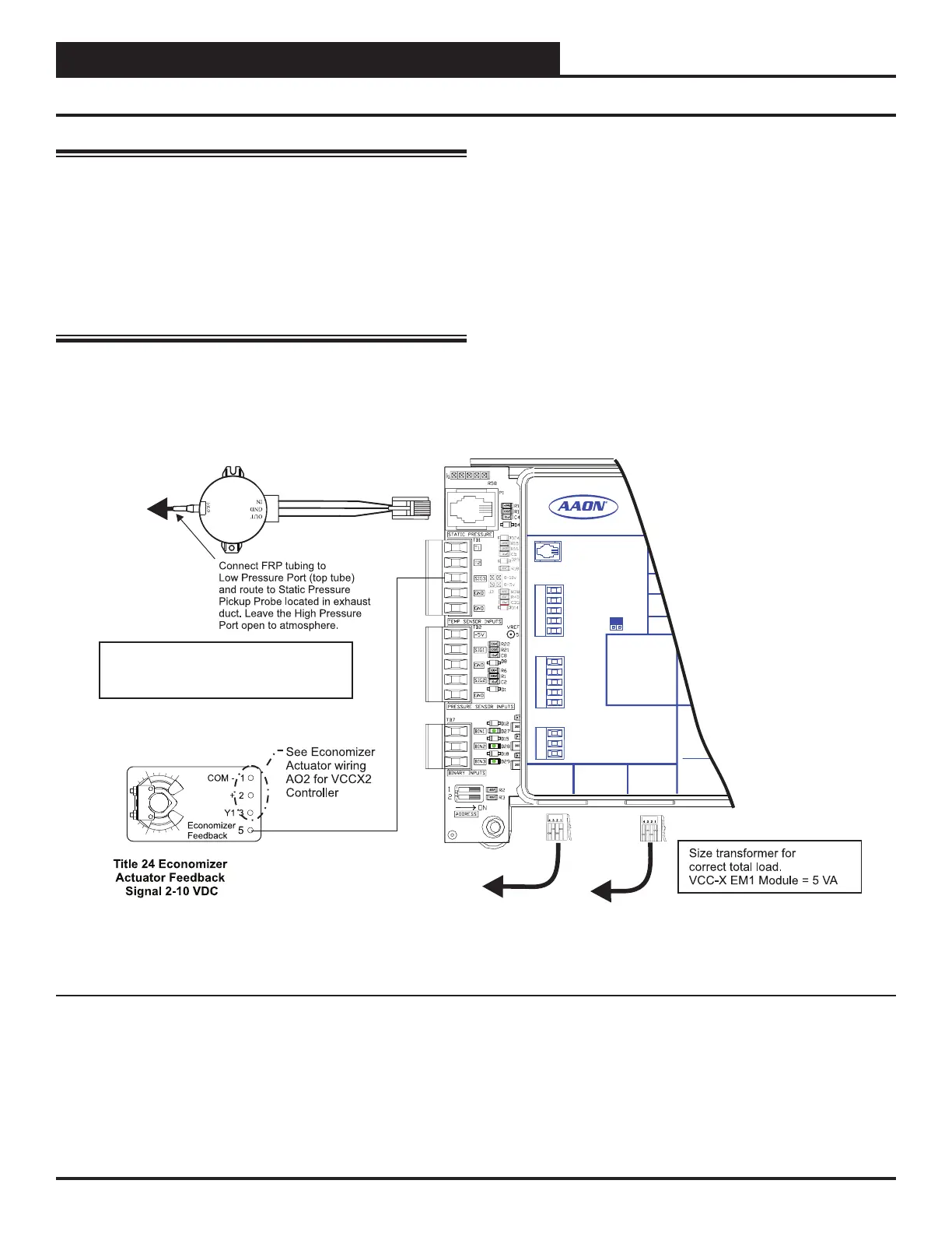 Figure 15: EM1 Exhaust Duct Static Pressure and Economizer Actuator Feedback Wiring