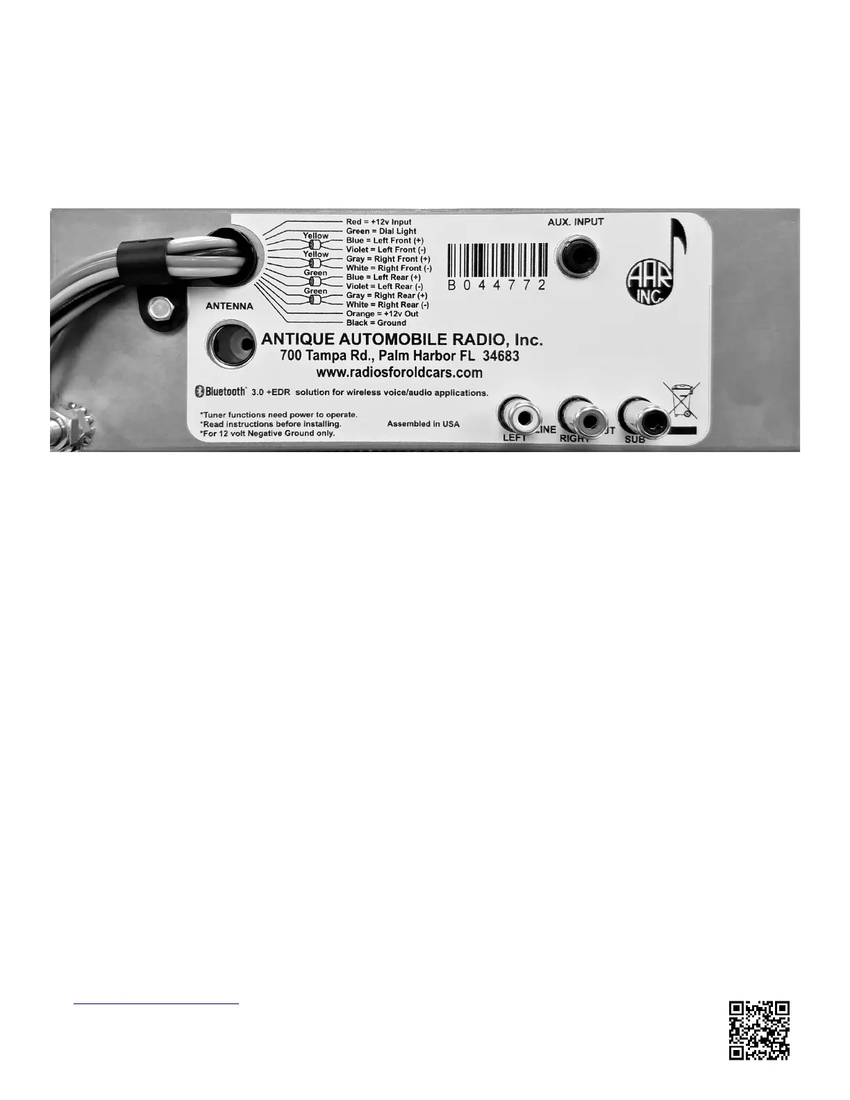 by Bluetooth SIG, Inc. and any use of such marks by Antique Automobile Radio, Inc. is under license.