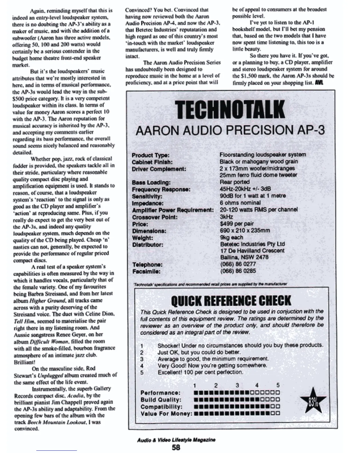 Aaron AP-3 - AP-3 Musicality and Technical Summary; Musical Performance and Genre Adaptability; Home Theatre and Budget System Integration; Technotalk Specifications