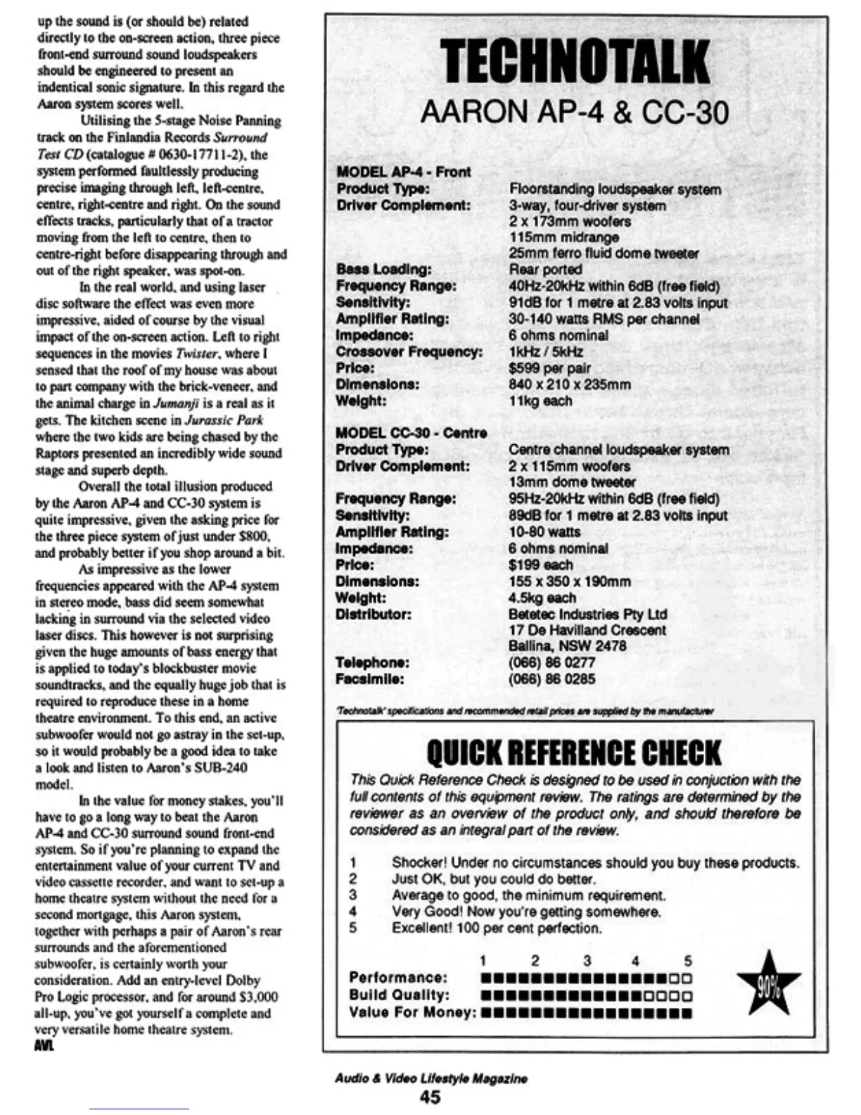 Aaron AP-4 - System Sonic Performance; Value and System Expansion; TECHNOTALK Specifications; Aaron AP-4 Technical Details